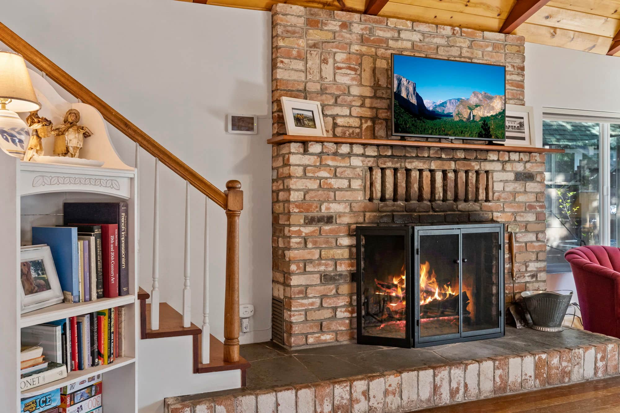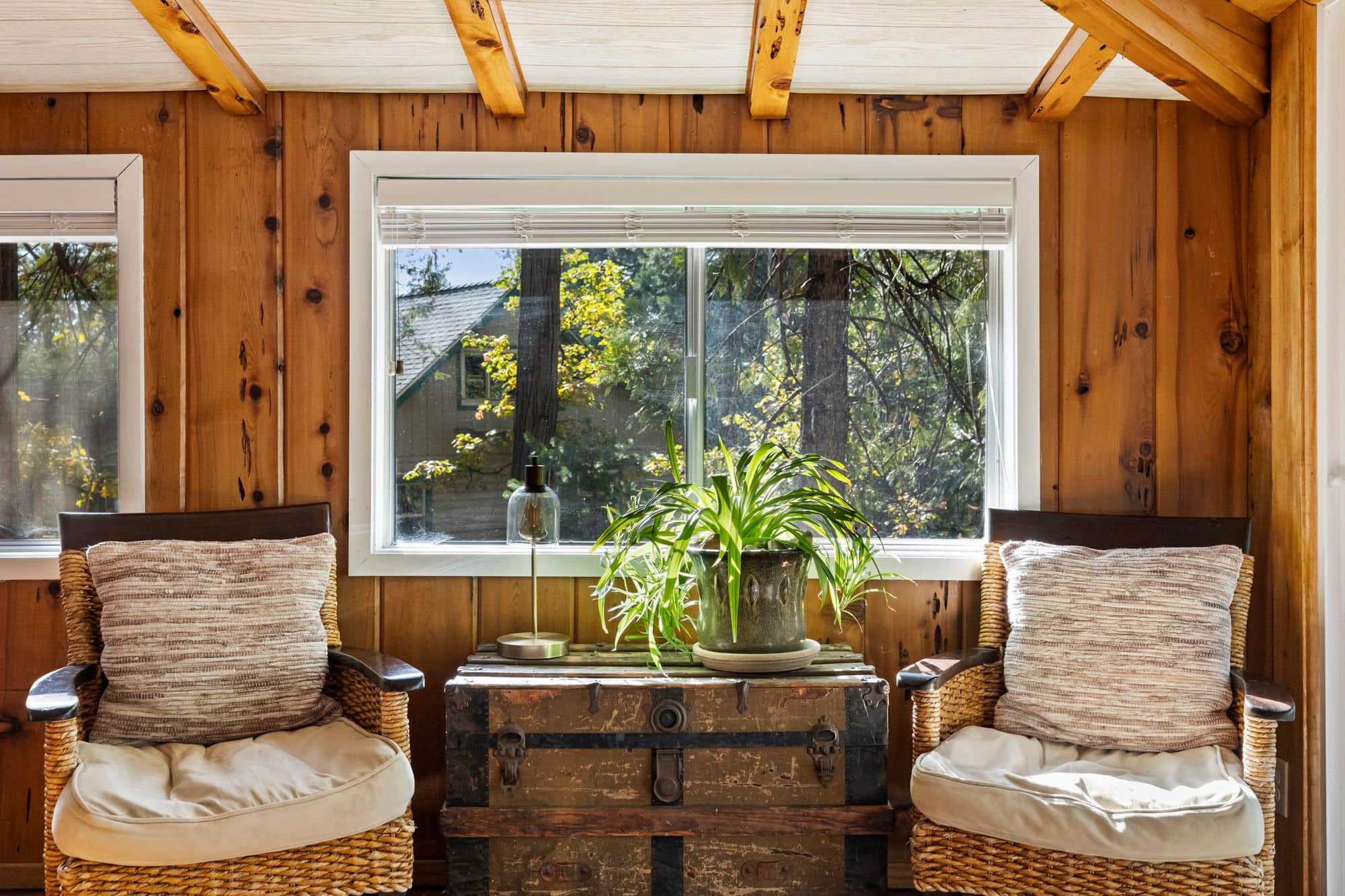 Step into this bright and inviting reading room, where natural light pours through large windows, offering a serene view of the lush front yard. Perfect for curling up with a book, this cozy space is designed for relaxation and tranquility.