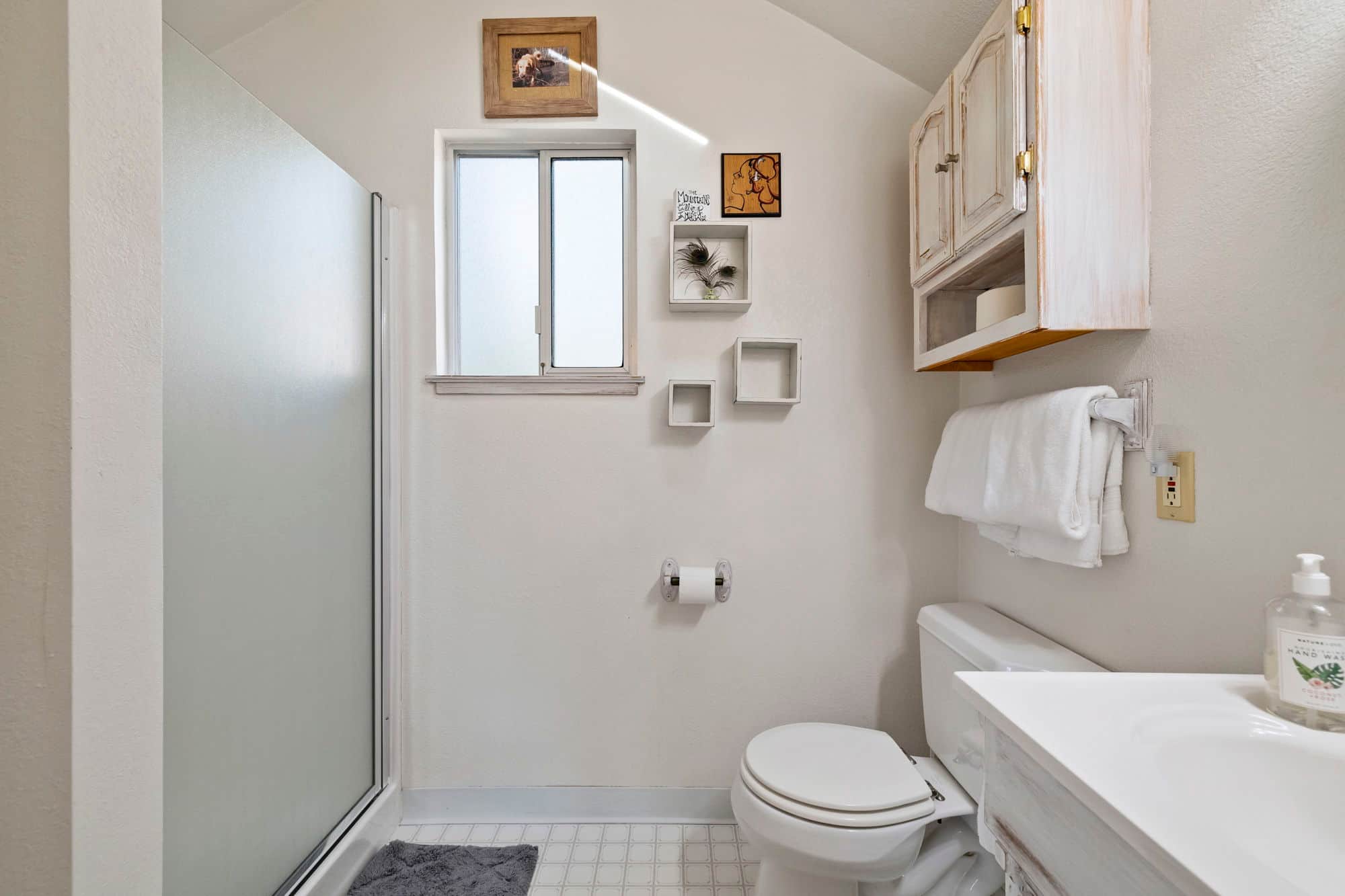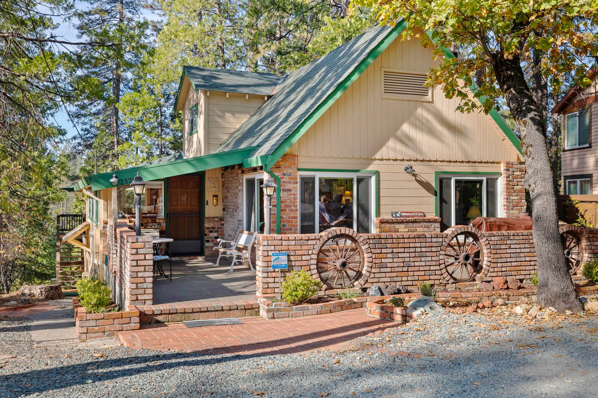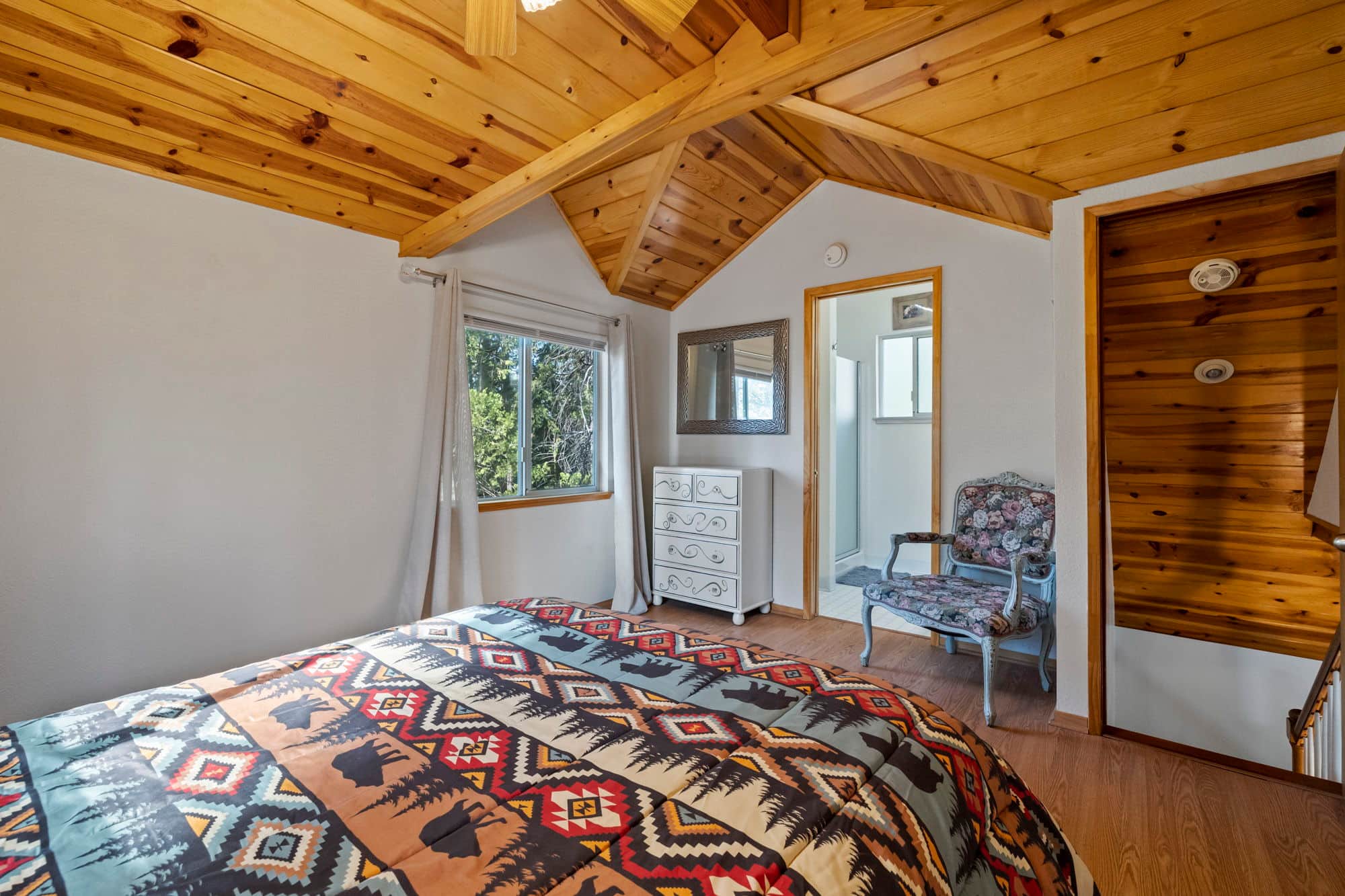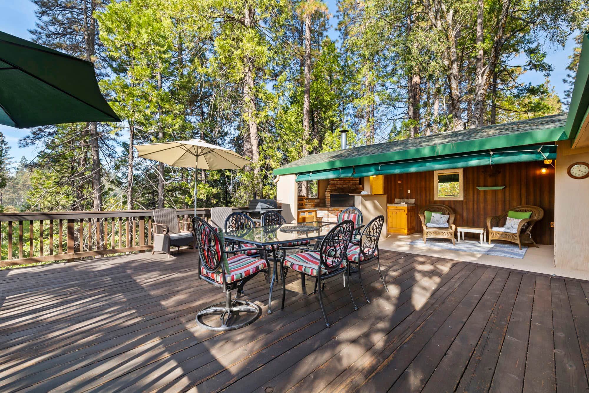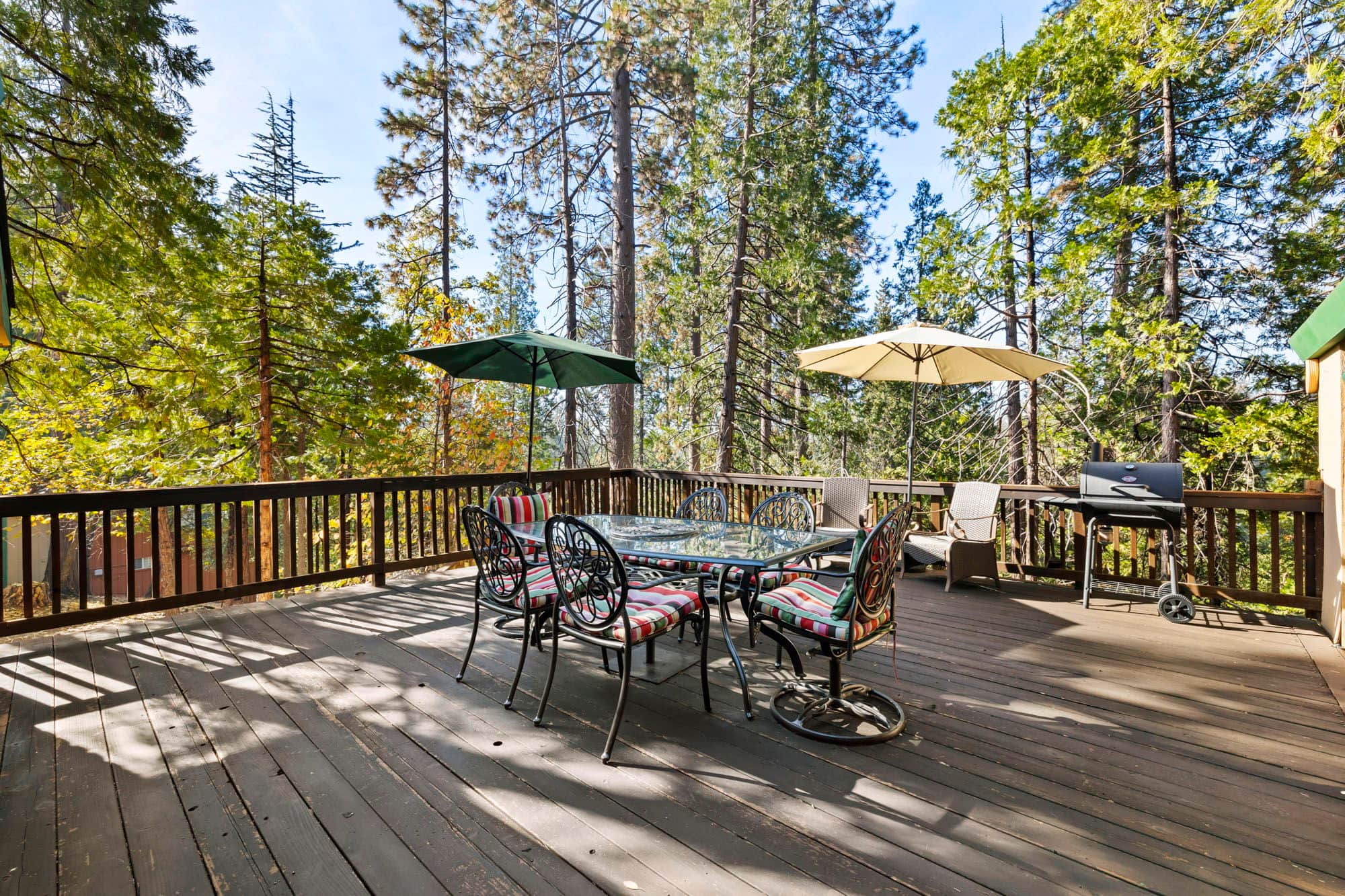 At the Cozy Cabin in Twain Harte, relax on the peaceful back patio surrounded by tall pine trees Perfect for unwinding with a glass of wine, grilling up your favorite meal, and soaking in the fresh mountain air. A serene escape where nature meets comfort.