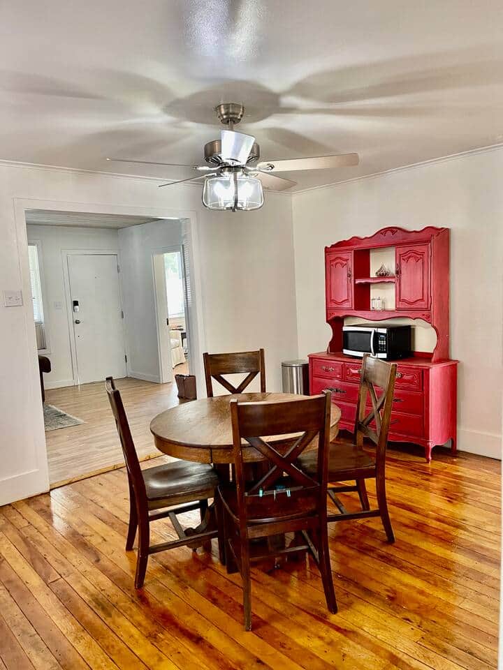 You and your guests will be close to everything when you stay at this centrally-located 1913 Craftsman. This home is well loved and you will love it too! Enjoy Sonora with our home in the heart of downtown! We are located about 1.5 hours of a drive from Yosemite. Walk to the tasty coffee shops, food and antique shops! If you are looking for an ideal centrally located place, look no further. Our 2 bed, 1 bath and off street parking is for you! Charming 1913 Cozy Craftsman in Sonora – Perfect for Your Yosemite Getaway Step into this beautifully updated 2-bedroom, 1-bathroom cabin, nestled just a short walk from downtown Sonora. Located near local coffee shops, antique stores, and some of the best spots for breakfast, lunch, or dinner, this home offers the perfect blend of comfort and convenience. Upon entering, you’ll be greeted by a cozy living room, complete with a relaxing reading room to the left, featuring large picture windows that flood the space with natural light. The centrally located kitchen in this home is perfect for preparing meals and gathering with loved ones. Just off the kitchen, you’ll can walk through a laundry room that leads down to the charming patio area. The large tree in the yard cemented back yard provides shade for the hot summer months. The two bedrooms, both located to the left of the kitchen, are separated by a the bathroom. Whether you’re in town to explore the nearby antique shops, enjoying the local dining scene, or take a short drive to Yosemite National Park, this cozy cabin is the perfect home base for your family or group of friends to enjoy a memorable stay. Guests have access to this home. There is a cleaning closet in the kitchen that will be locked for supplies and cleaning materials for in between guests stays. I am usually pretty quick with responses during the day since I work from my phone. After 9pm I am asleep but will get back to you asap in the morning! We are right next to a busy intersection, with a walk to downtown! We do have a shared driveway. If you prefer to try to park in the driveway. PLEASE respect the neighbors and park on our side of the driveway. There is a line down the driveway, so make sure you car is on our side of the line.